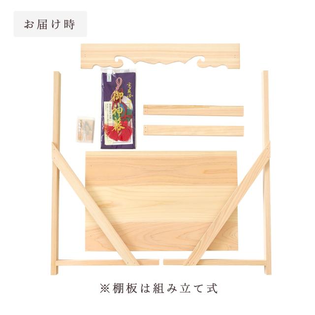 ・お神札は付属いたしません。 ・重量物のため、棚板の取付設置は工務店、大工さん等の専門業者への依頼を強く推奨しております。ご注文前に必ずご確認ください。 |