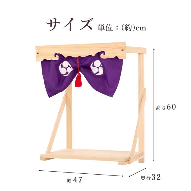 神棚の大きさ:高さ36 幅39.5 奥行19 お神札が入るスペース:高さ27 幅24.5 切り込みの奥行2 棚板外寸の大きさ:幅47 奥行32 高さ60 棚板部の大きさ:幅45 奥行30 |