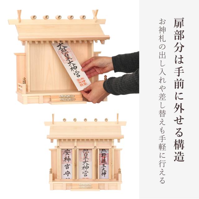 少しサイズの大きいようなお神札でも、扉を外すことで手軽にお収めいただけます。