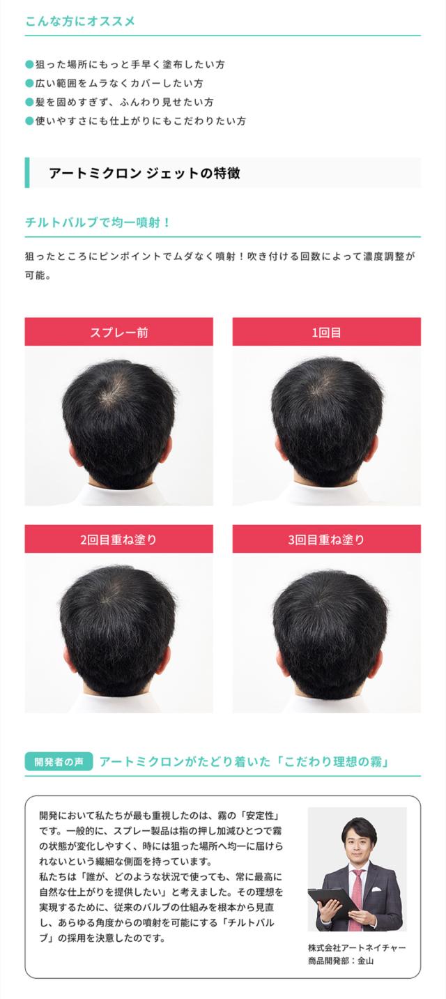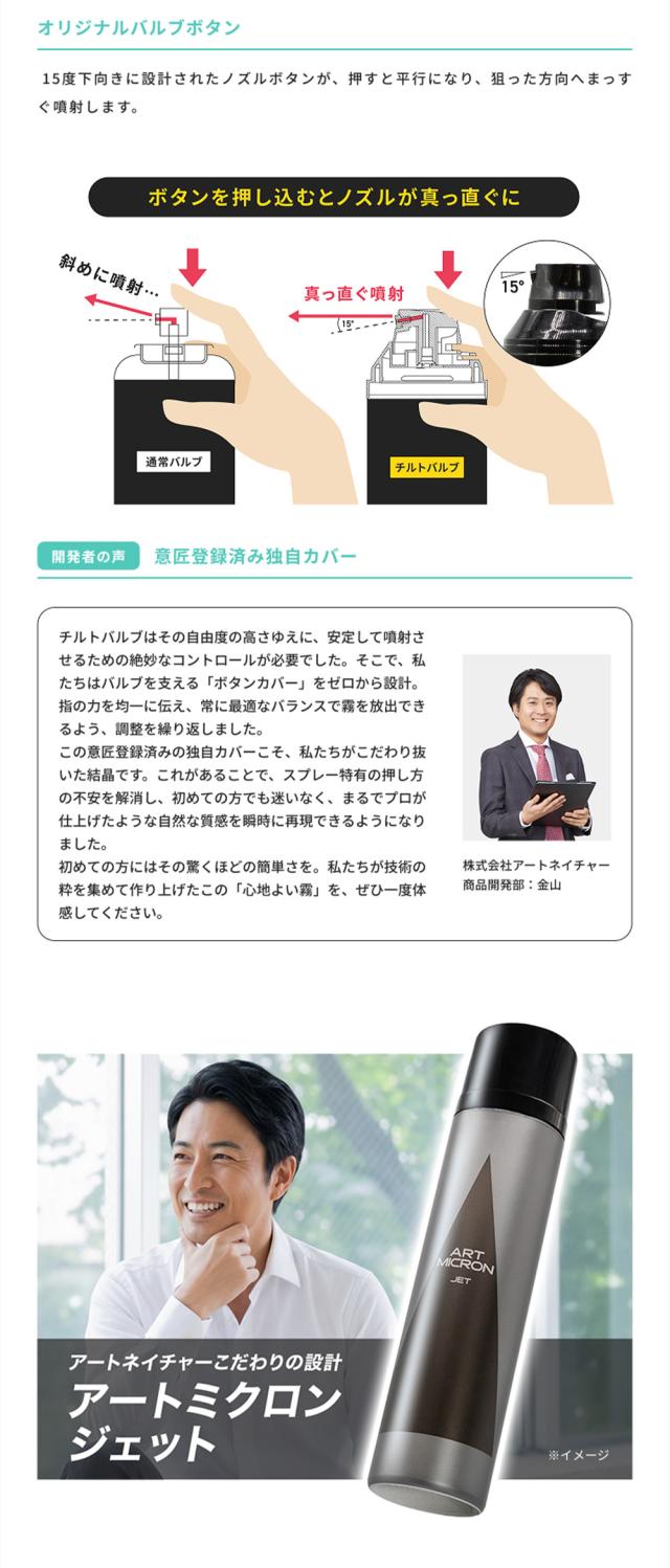 公式 アートネイチャー アートミクロン ジェット スプレー 薄毛隠し 増毛スプレー オリジナル バルブボタン ボリュームアップヘアスプレー 1本 単品 耐水 白髪隠し ブラック 黒 薄毛 増毛 ハゲ隠し 抜け毛 増え見せ 増毛ふりかけ ヘアカバー 男性 女性