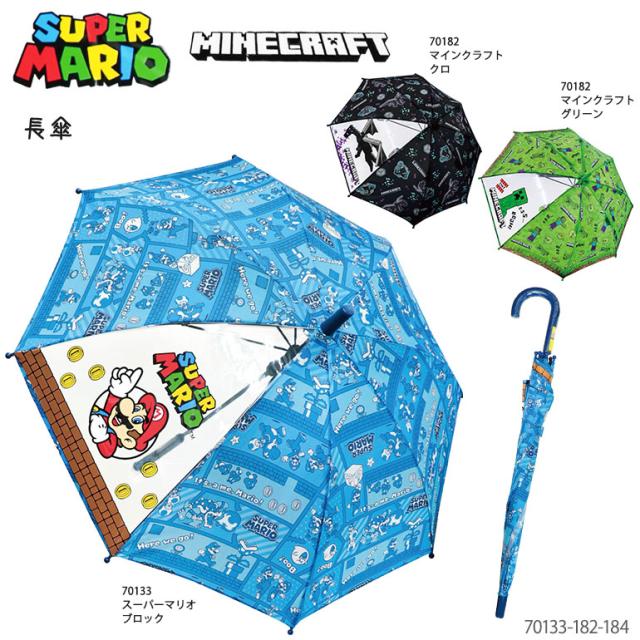 長傘 スーパーマリオ マインクラフト 雨傘 雨具 子供傘 子供 学童 男の子 通学 小学生 キッズ キャラクター 通園 幼稚園 ゲーム 70133 70182 70184