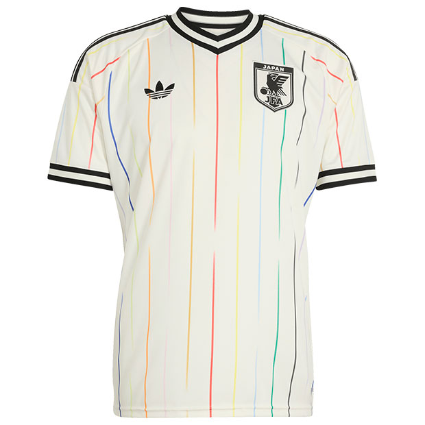 選手着用ユニフォームのレプリカモデル(応援・観戦に最適なサポーター向けユニホーム)。「Colors(水平線の向こう側のカラフルな景色)」をコンセプトに、12色の異なるカラーを採用。11色は選手を表し、鮮やかなグラフィックに施された中央の赤いストライプは、日本のサッカーファミリーの心を象徴。生地に組み込まれたCLIMACOOLテクノロジーが汗を吸い上げて分散させ、涼しくドライな着用感をキープ。スリムフィット仕様。大人/メンズ用。