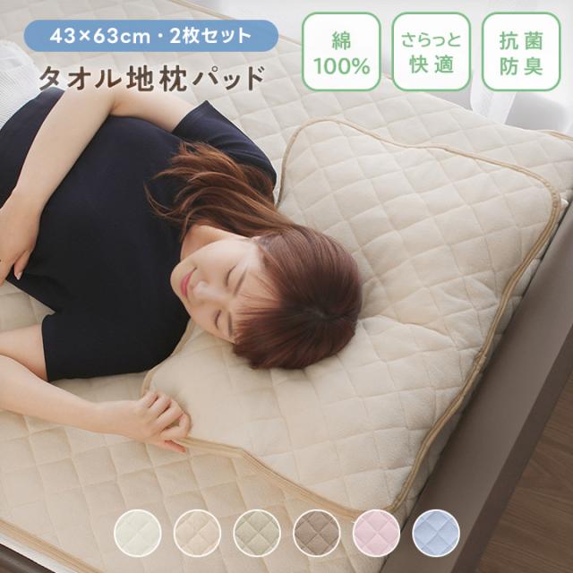 ぽっきり 枕パッド 【2枚セット】綿100% パイル 吸湿 さらさら タオル地 43×63 コットン オールシーズン 枕パット まくらパット まくらパッド 抗菌防臭 防ダニ 春 夏 秋 冬 天然素材 SS004