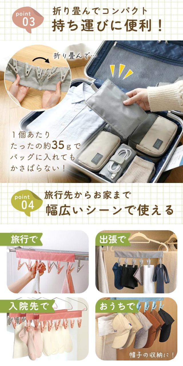 携帯洗濯ばさみ/ピンチハンガー/洗濯ハンガー/小物干し/ミニハンガー/小物ハンガー/旅行用物干し/携帯物干し/携帯ハンガー/6連ハンガー/6連ピンチ/6ピンチ/3個セット/折りたたみ/コンパクト/省スペース/省スペース設計/面ファスナー/くるっと巻き付け/簡単取り付け/どこでも干せる/吊り下げ/吊り下げ収納/部屋干し/室内干し/浴室干し/梅雨の部屋干し/物干し/ポール/タオルハンガー/旅行/旅行用/旅行グッズ/旅行便利グッズ/ホテル/出張/入院/入院グッズ/一人暮らし/クローゼット収納/クローゼット整理/防災グッズ/ポータブル/軽量/洗濯ピンチ/洗濯クリップ/ランドリーグッズ/靴下/靴下干し/ハンカチ/ハンカチ干し/下着/下着干し/ネクタイ/ベルト/帽子/帽子収納/キャップホルダー/手袋/撥水/クリップ