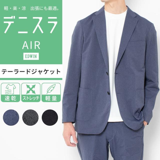 デニスラ AIR テーラードジャケット EDB813 EDWIN ジャケット メンズ 春夏 エドウィン EDB813 黒 ネイビー グレー 超軽量 通気性 メッシュ ストレッチ 伸びる シワになりにくい 出張 ビジネス ゴルフ クールビズ 清潔感