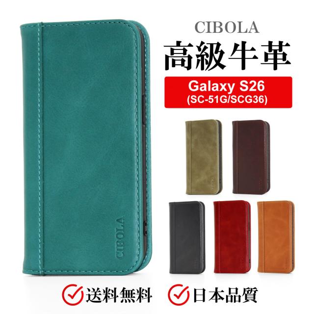 日本メーカーCIBOLA発売の高級牛革・本革 Galaxy S26 ( SC-51G / SCG36 ) 手帳型スマホケース。耐衝撃、スタンド機能、カード収納で便利、本革のエイジングが楽しめる逸品。