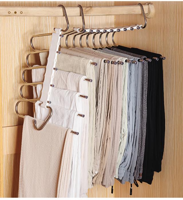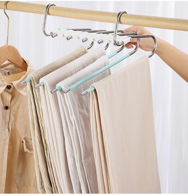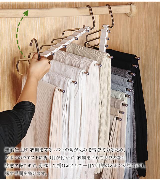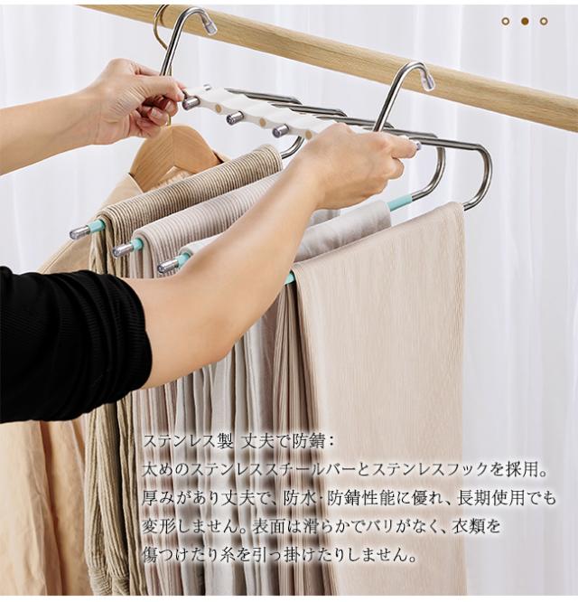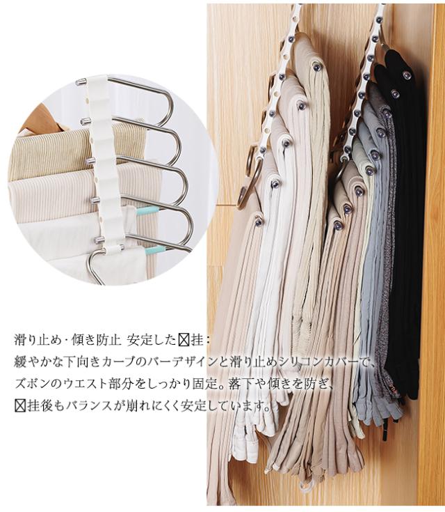 ★週末限定★10%OFFクーポン 【2点6%OFFクーポン】ズボンハンガー ガチョウ型 ステンレス 多機能ズボンハンガー 小物ハンガー ボトムハンガー 9 本バータイプ 滑り止め 多層無痕 ズボン掛け クローゼット 収納グッズ おしゃれ
