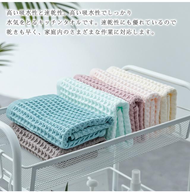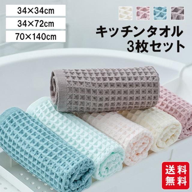 ★週末限定★10%OFFクーポン キッチンタオル 3枚セット 北欧 台拭き 34×34cm 無地 ふきん コットン 布巾 綿 おしゃれ 吸水力 食器拭き 水切り ワッフル
