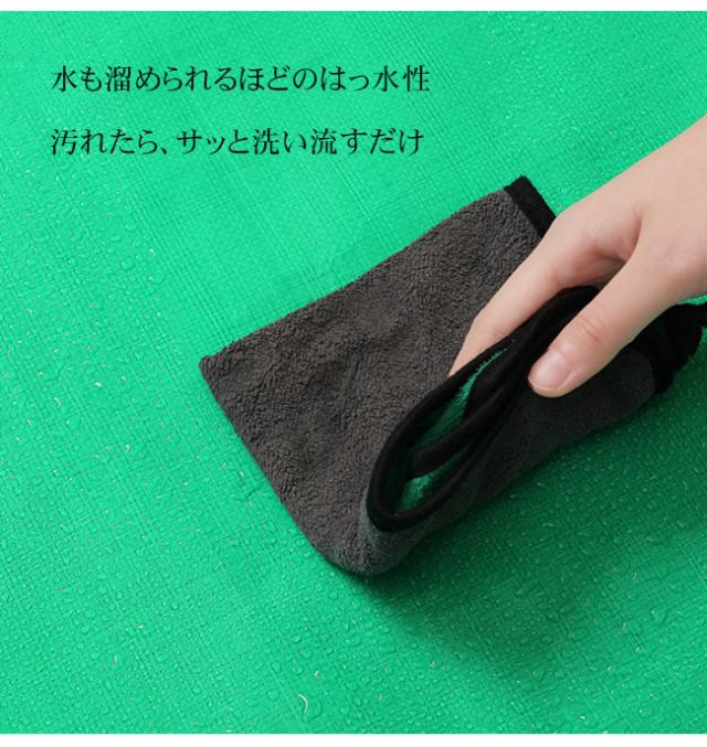 使用後は水拭きまたは水洗いで簡単に汚れを落とせます。四隅の留め具でコンパクトに折りたため、収納にも便利です。
