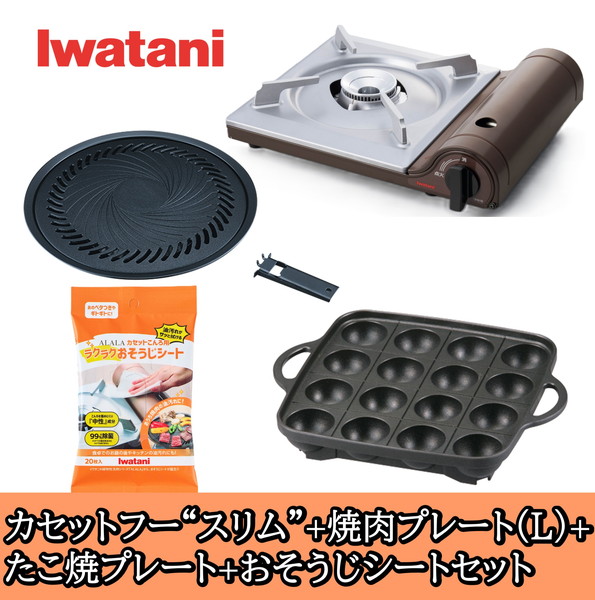 岩谷(イワタニ) カセットコンロ カセットフースリム 焼肉(L)・たこ焼きプレート・お掃除シート セット CB-SL-1 CB-A-YPL CB-A-TKP AOS-SH20【ガスボンベ別売】
