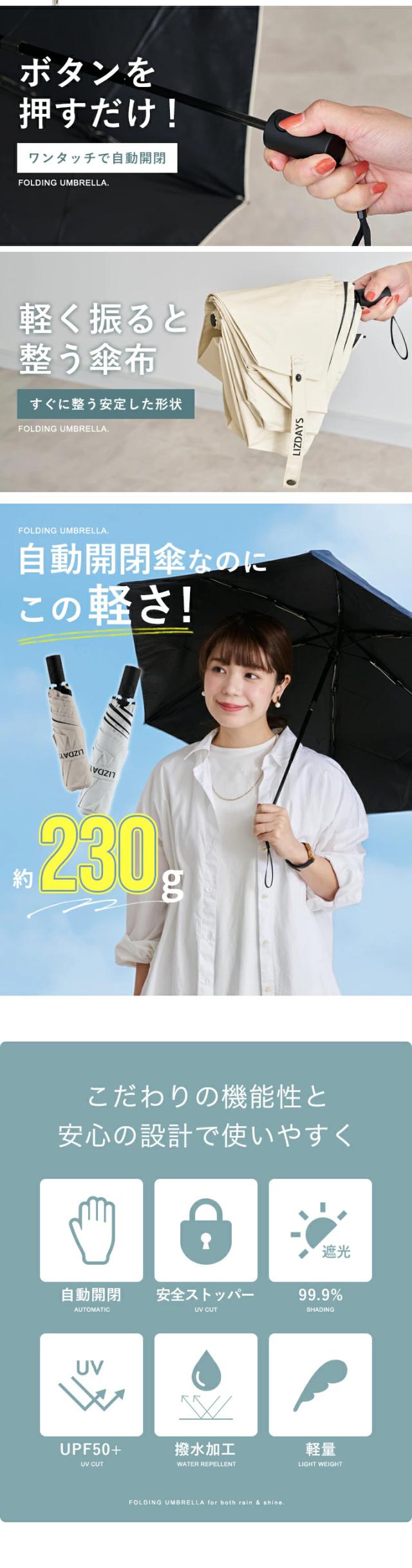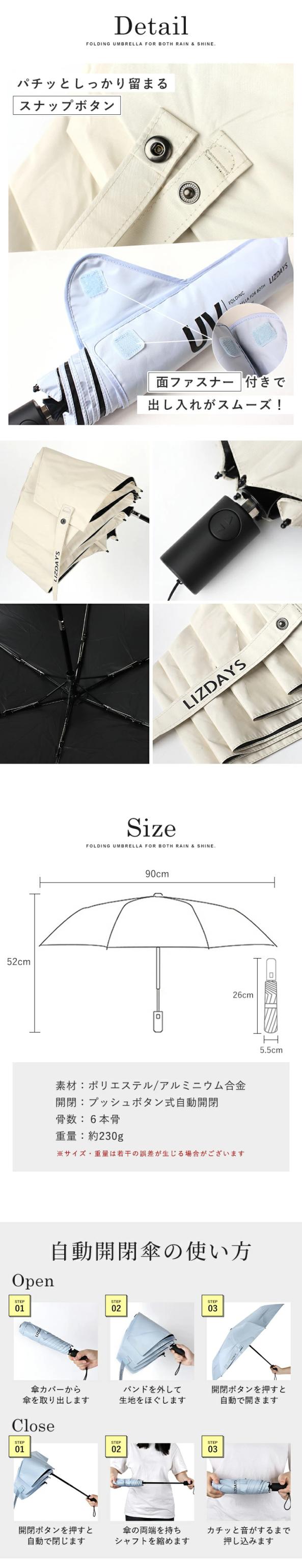 傘 日傘 折りたたみ コンパクト 雨傘 レディース メンズ ジャンプ傘 軽量 自動開閉 UVカット UPF50+ 紫外線カット 遮光 遮熱 6本骨 おしゃれ LIZDAYS リズデイズ 大人 常備傘 日傘雨傘兼用 ワンプッシュ 逆戻り防止 晴雨兼用 暑さ対策【lz-91203】