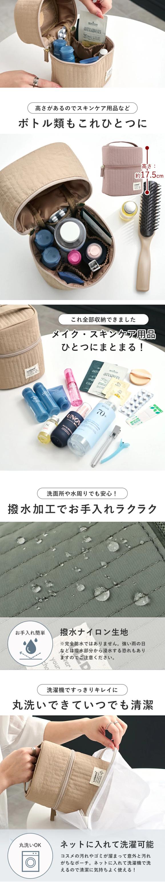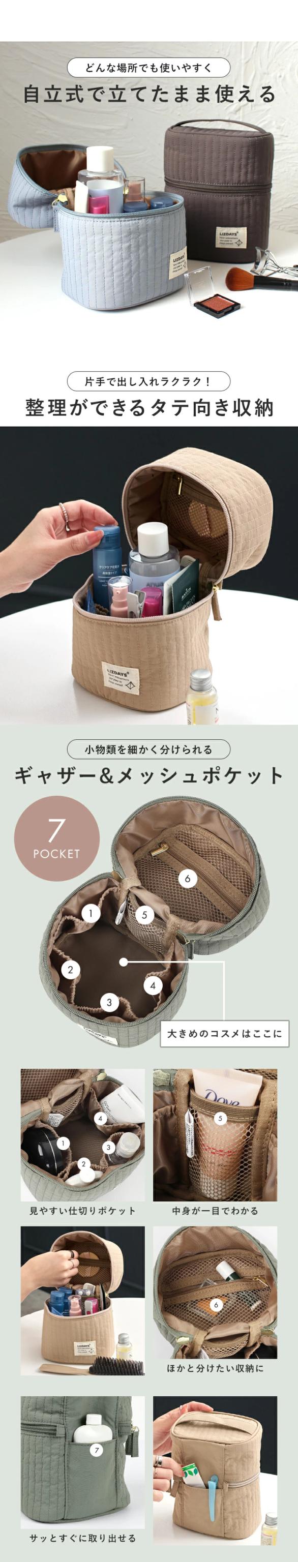 化粧ポーチ レディース メイクポーチ 小物入れ 縦型 ポーチ コスメポーチ ナイロン 撥水 立てて収納 コンパクト キルティング バニティ おしゃれ LIZDAYS リズデイズ 大人 トラベルポーチ 旅行 メイク道具 洗える 持ち歩き 収納 整理 自立 機能的【lz-49810】