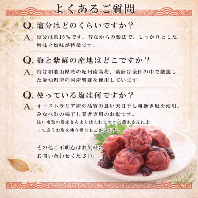 梅は和歌山県産の紀州南高梅、紫蘇は国産赤しそを使用しています。