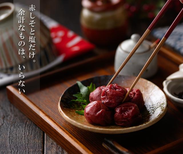 赤しそと塩だけで漬け込んだ、昔ながらの製法。