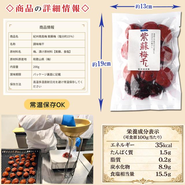 梅干し 無添加 しそ漬け しそ梅干し 訳あり 200g(塩分15% しそも美味しい 国産赤紫蘇仕込み) 昔ながらの酸っぱい梅干し 紫蘇梅干し 紀州南高梅 メール便