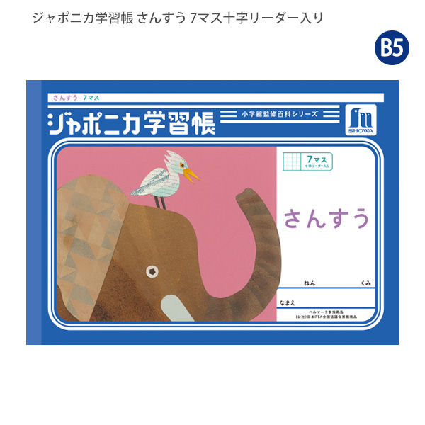 ショウワノート JL-1 ジャポニカ学習帳 さんすう 7マス 十字リーダー入り 算数 ノート B5判 22mmマス 小学校 1年生 2年生 低学年 家庭学習 予習 復習 ベルマーク参加商品 日本製 SHOWA NOTE