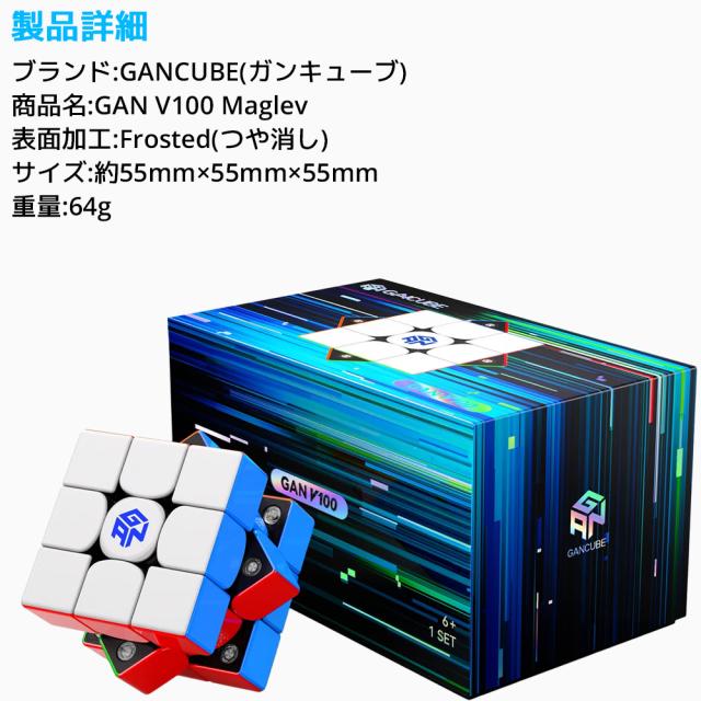 3か月保証 GANCUBE GAN V100 Maglev Frosted ガンキューブ 3x3 スピードキューブ 競技用 マグレブ 磁気浮上 フロスト 艶消し 55mm マグネット 磁石 内蔵 調整可能 ステッカーレス ルービックキューブ パズル 脳トレ 知育玩具 正規販売店 公式 おすすめ