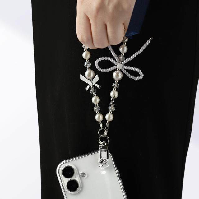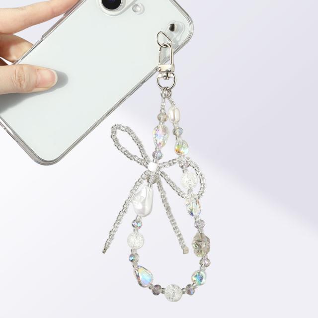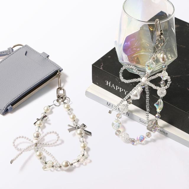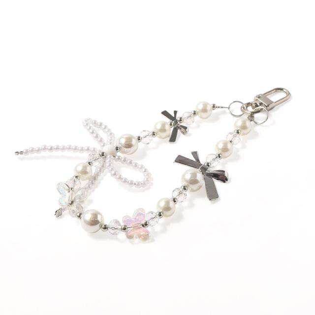 | キーホルダー キーチャーム 小物 チャーム バレエコア ナスカン付き おしゃれ ホワイト パール キラキラ 韓国 Y2K ストラップ |