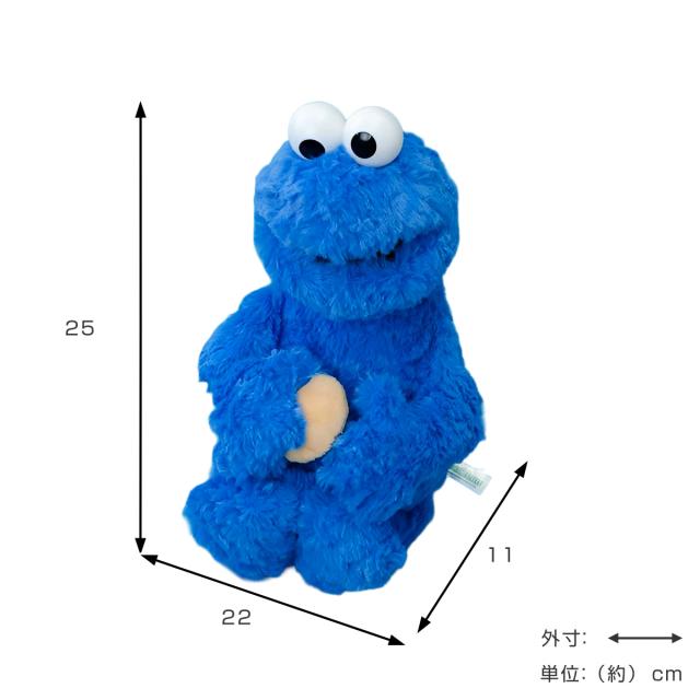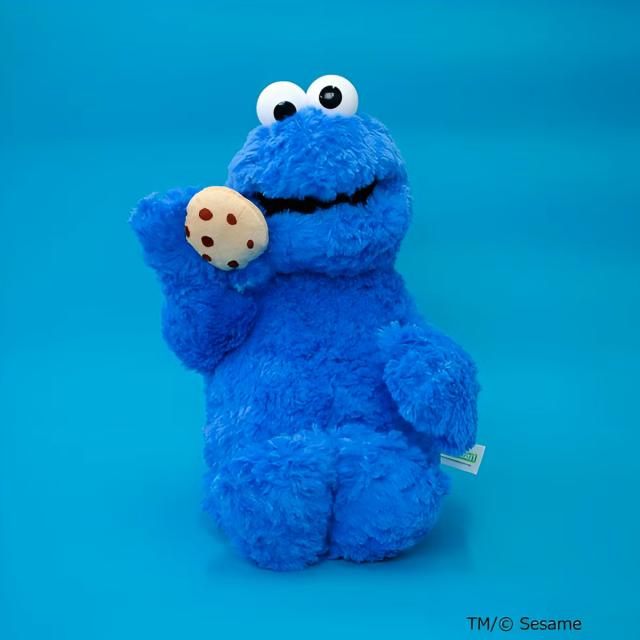 世界中で愛されているキャラクター「クッキーモンスター」のぬいぐるみです。大きな目とブルーのふわふわボディが特徴で、キャラクターのかわいさをそのまま再現しています。