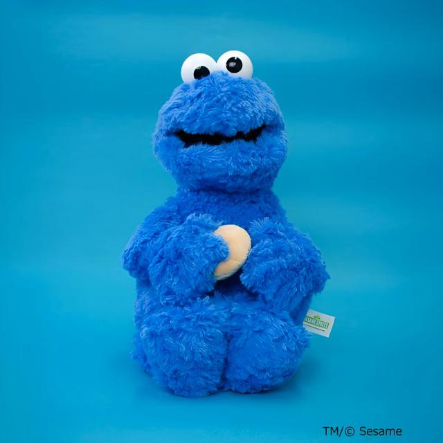 クッキーが大好きな「クッキーモンスター」のぬいぐるみです。特徴的な大きな目とふわふわのブルーのボディが印象的で、キャラクターの魅力をそのまま表現しています。