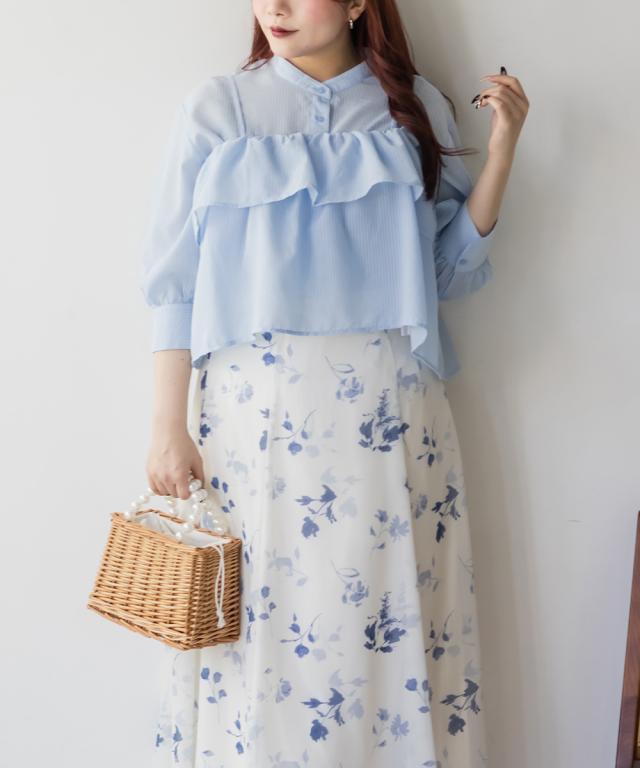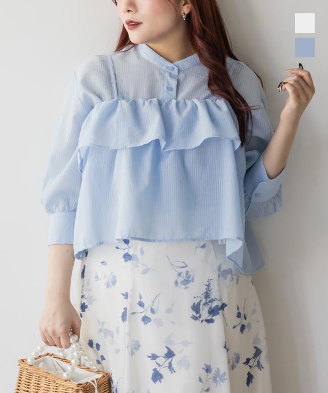 大きいサイズ/レディース/3L/4L/5L/フレアビスチェ&シアーストライプシャツセット