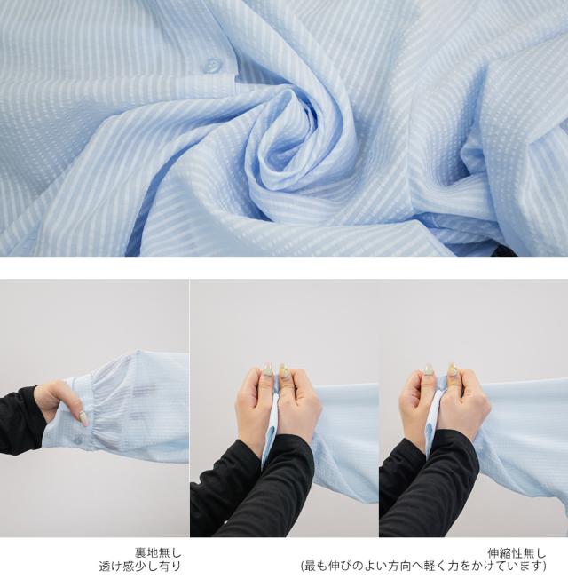 | 裏地無し、透け感少し有り、伸縮性無し |