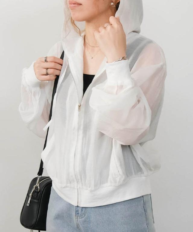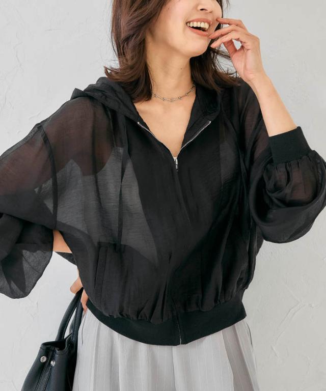 程よい透け感が魅力のシアーパーカーは、軽やかで柔らかな印象を与えてくれるアイテム。