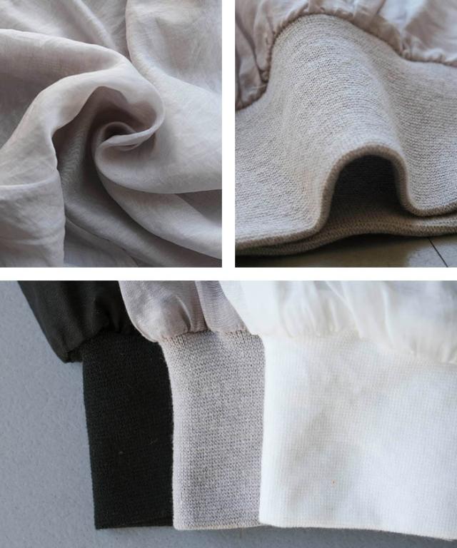 袖口や裾はシンプルに仕上げ、すっきりとした印象に。