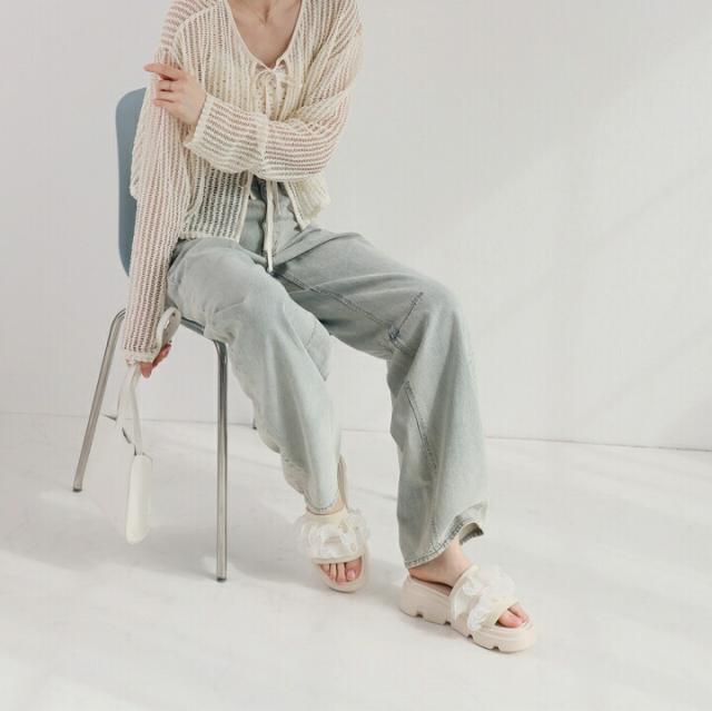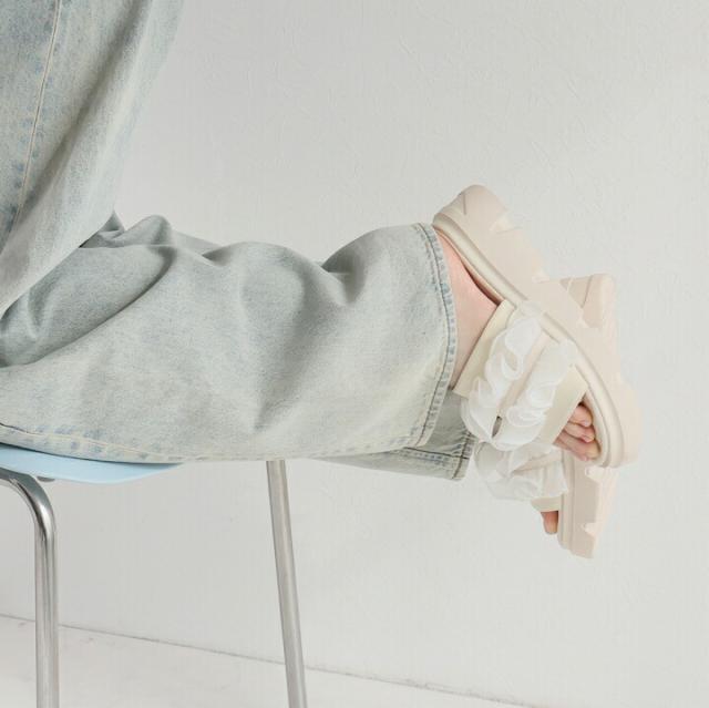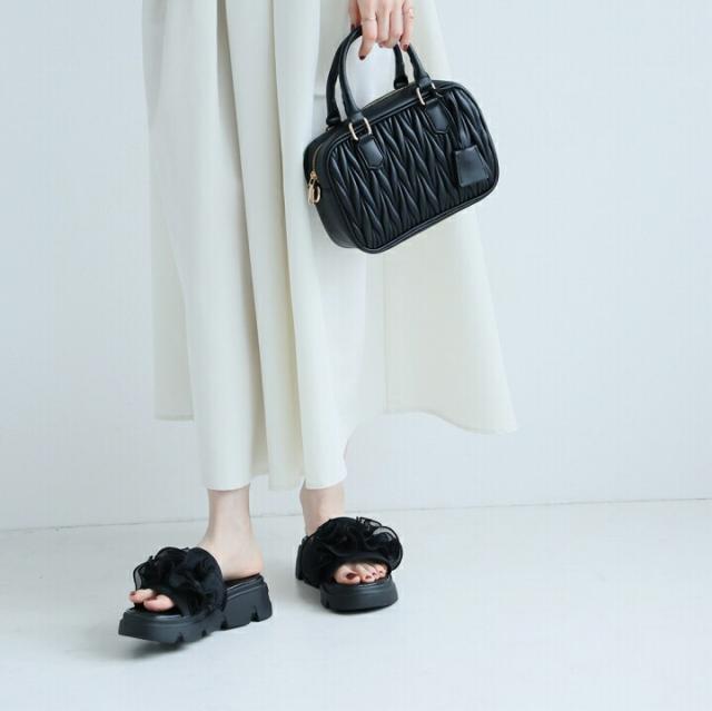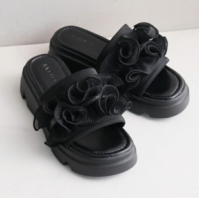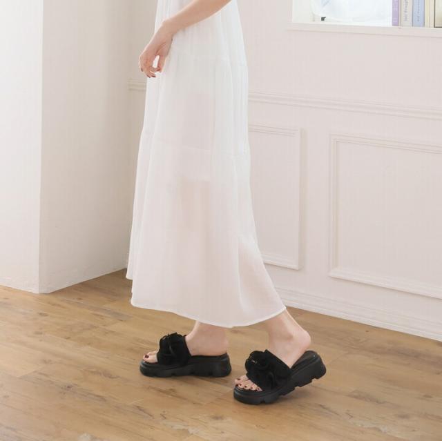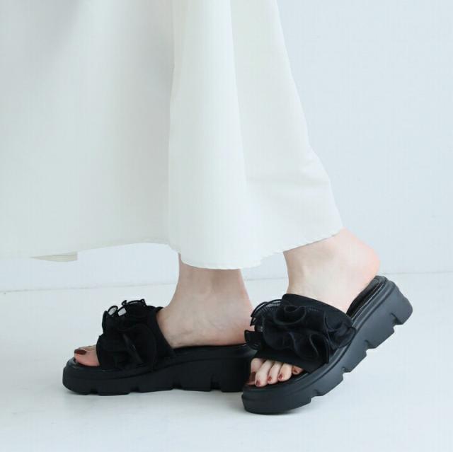 ・ボリュームのシアーフリルが華やかな厚底サンダル!