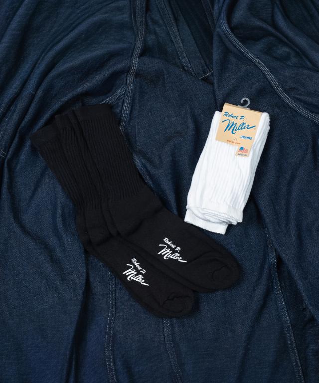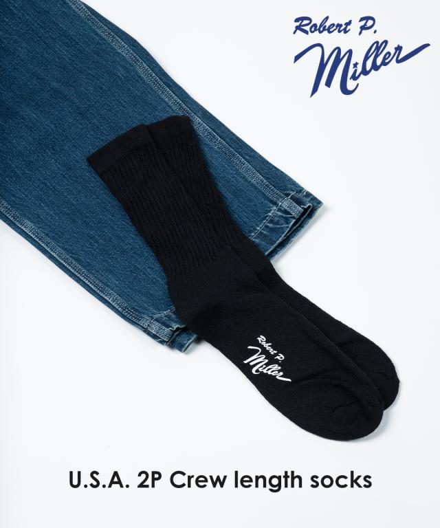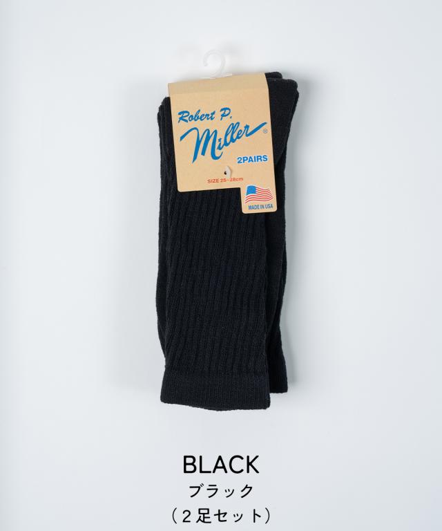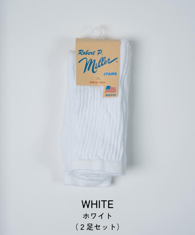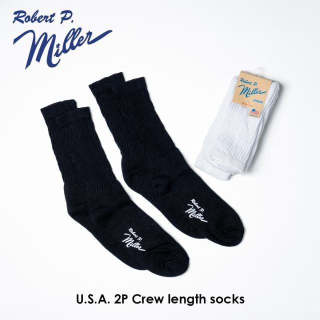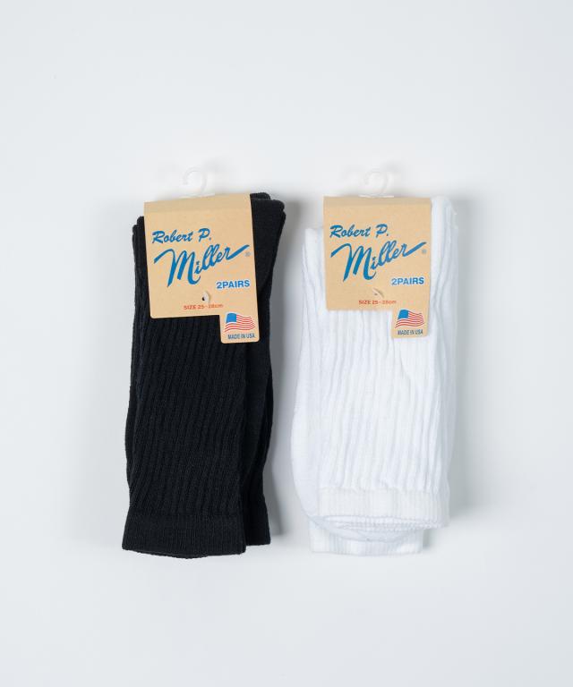 Robert P.Miller ロバート ピー ミラー U.S.A. 2P Crew length socks 靴下 メンズ レディース アメリカ製 白 黒 アウトドア キャンプ