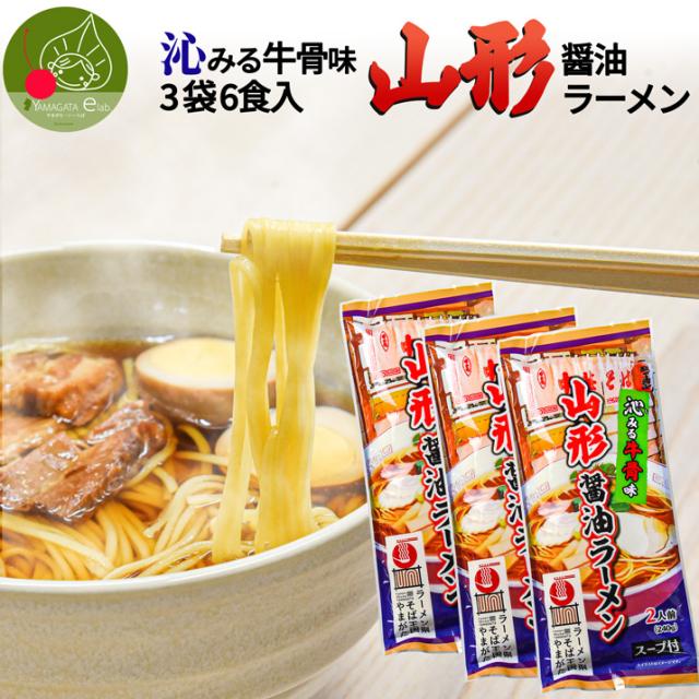 山形醤油ラーメン 沁みる牛骨味 3袋6食入 スープ付き 送料無料 ラーメン王国山形 袋麺 みうら食品 山形 ラーメン 乾麺 タレ付き 細麺 ご当地ラーメン メール便