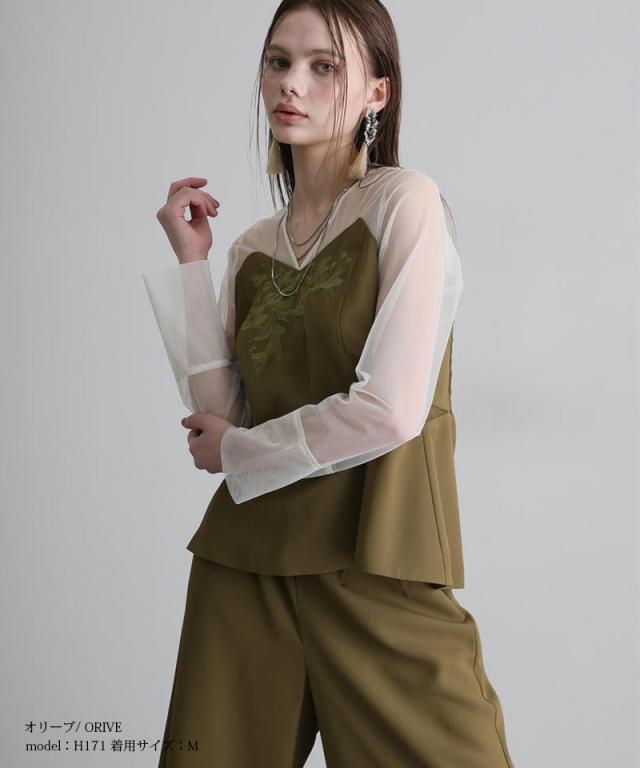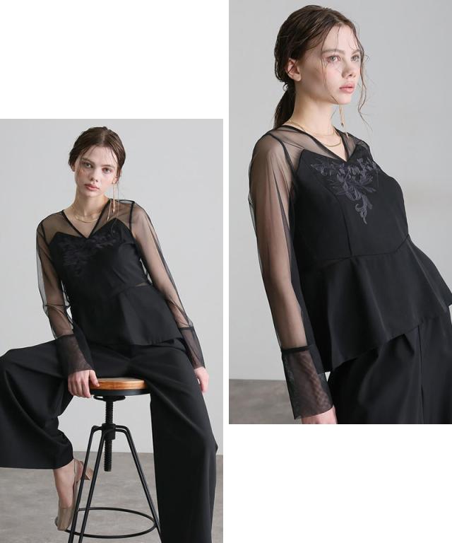 ■チュール切り替えの華やかトップス