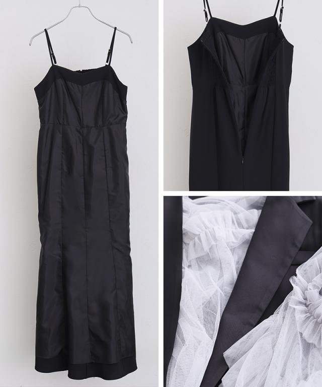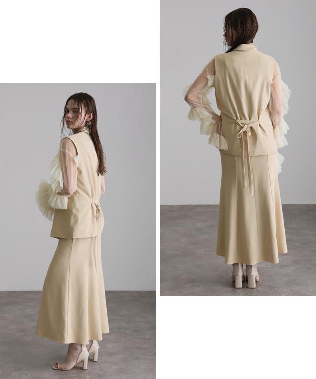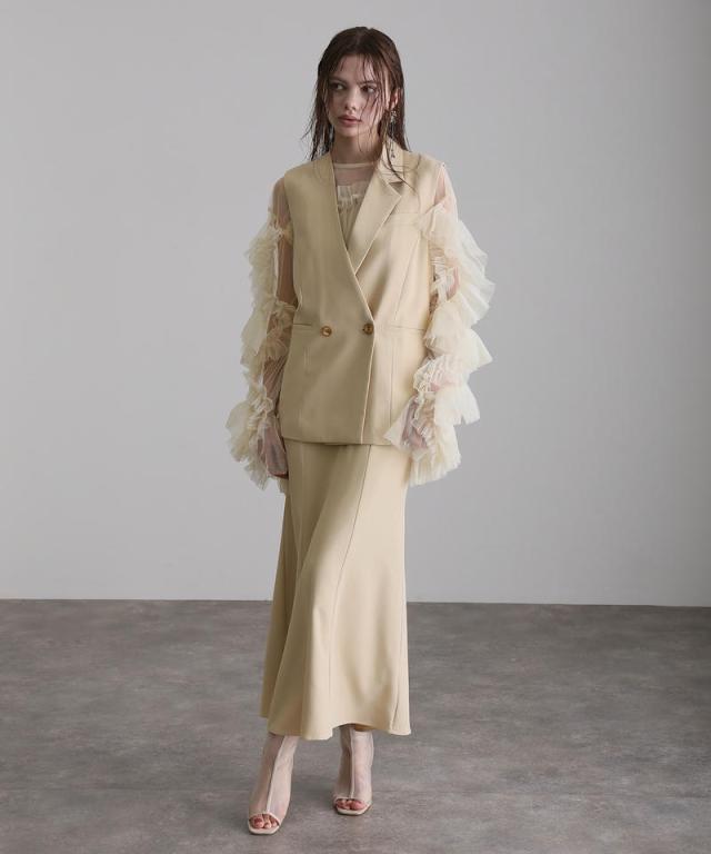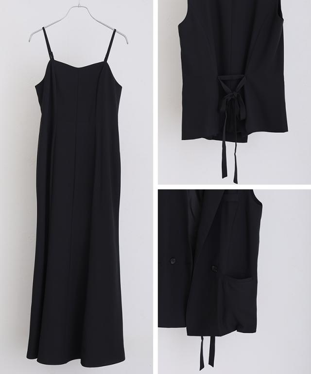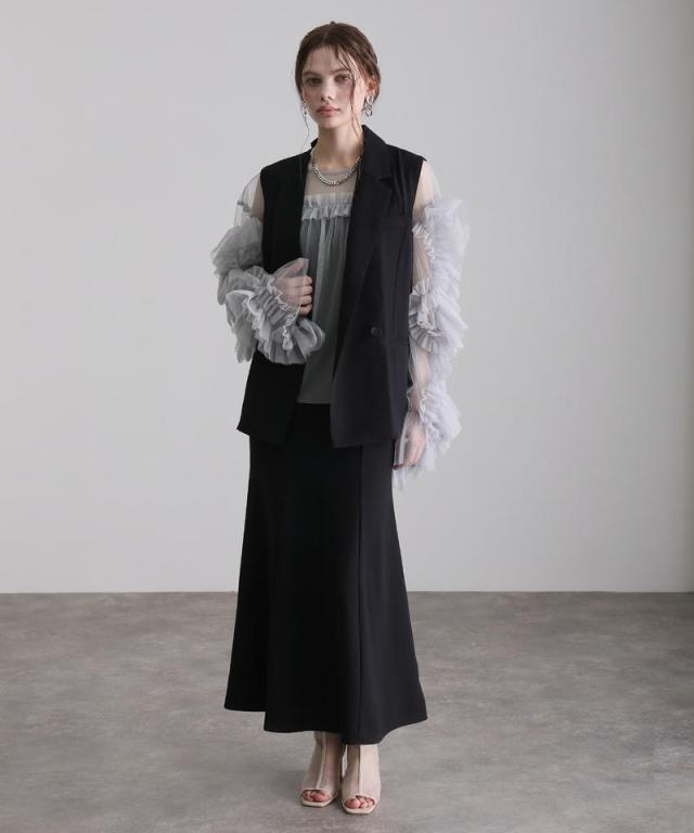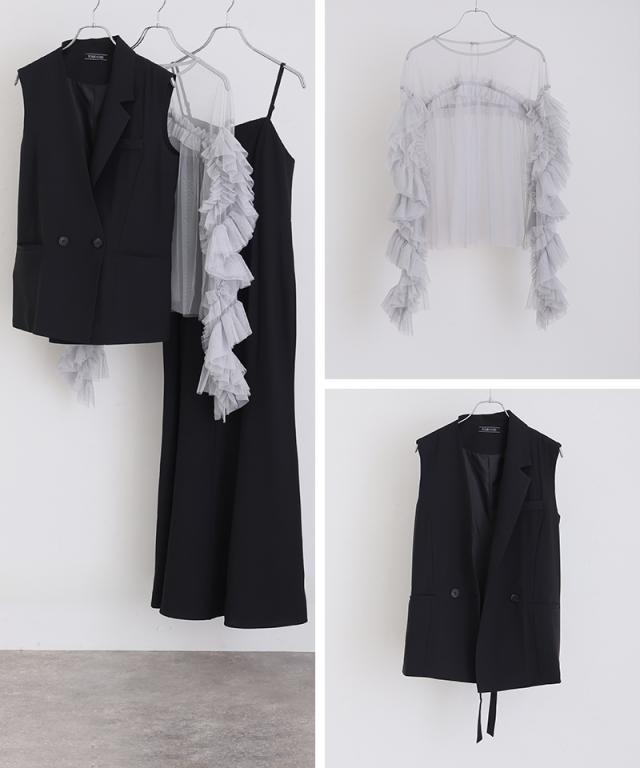 チュールブラウス・ジレ・ワンピースの3点が揃ったセットドレス。