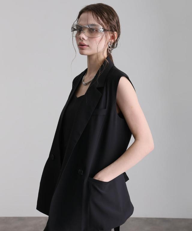 ジレを合わせることで全体を引き締め、モードな印象にまとめます。