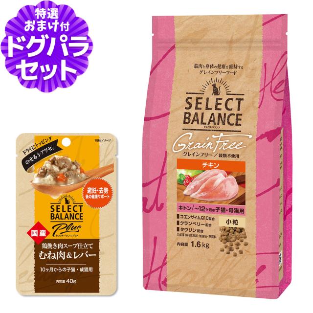 【沖縄以外送料無料】セレクトバランス グレインフリー キャット キトン チキン 小粒 1.6kg+SBパウチ 鶏挽き肉避妊・去勢後子猫成猫40g