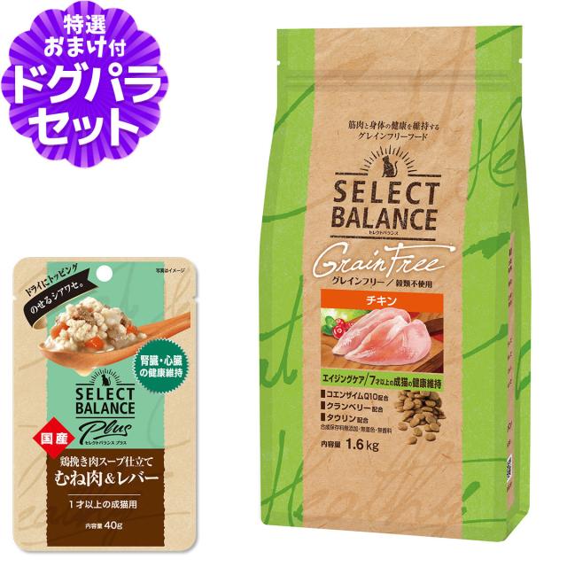 【沖縄以外送料無料】セレクトバランス グレインフリー 猫 エイジングケア チキン 1.6kg+SBパウチ 鶏挽き肉腎臓・心臓 成猫40g キャットフード
