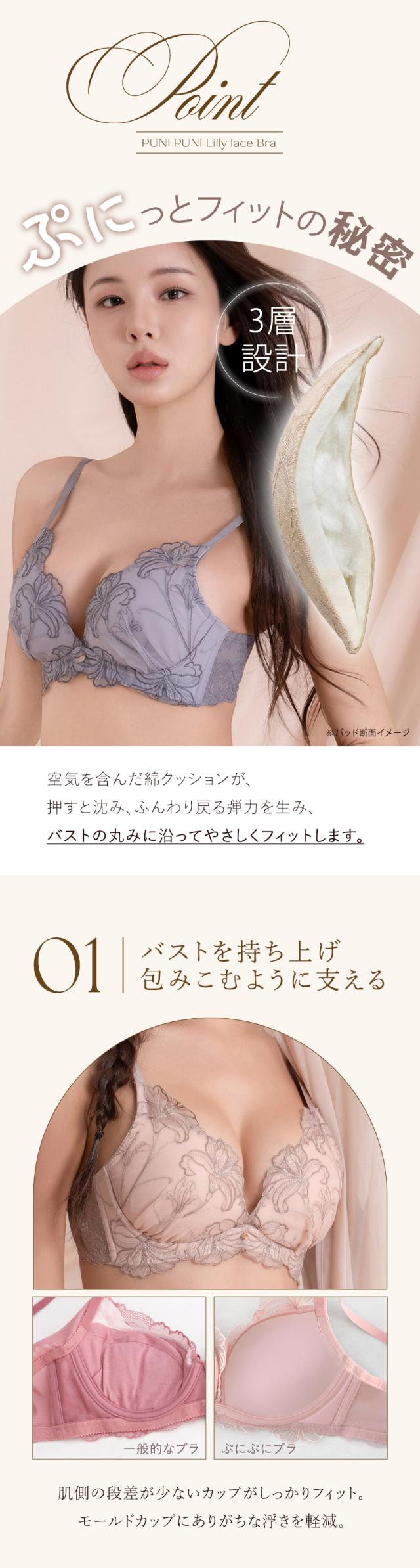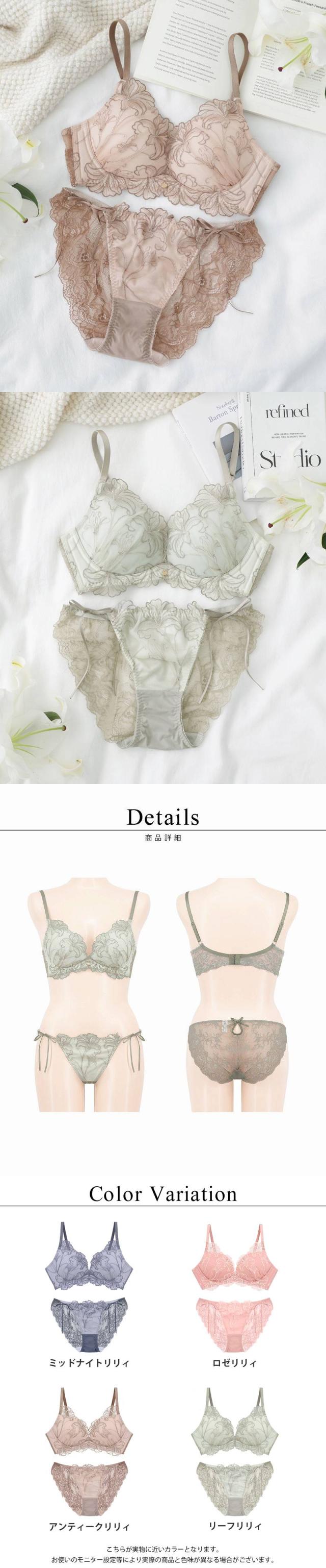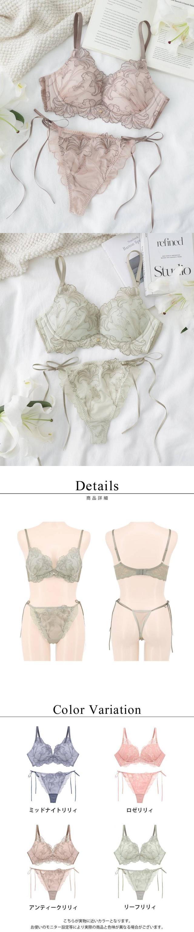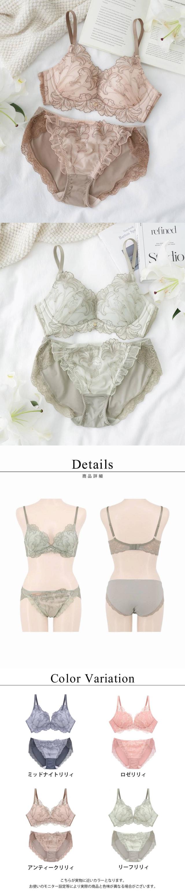 《ぷにぷにブラ|Canvas Me》リリィアートブラ&ショーツ 上下セット 【グラマーサイズ】ノンワイヤーブラ モールドカップ 【春新作】 tu-hacci