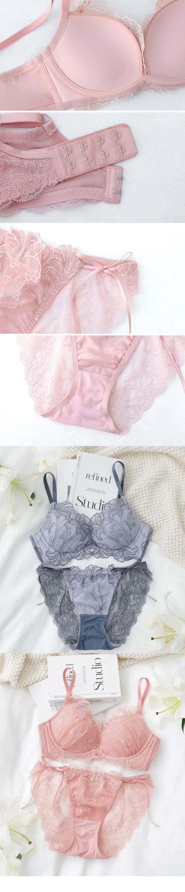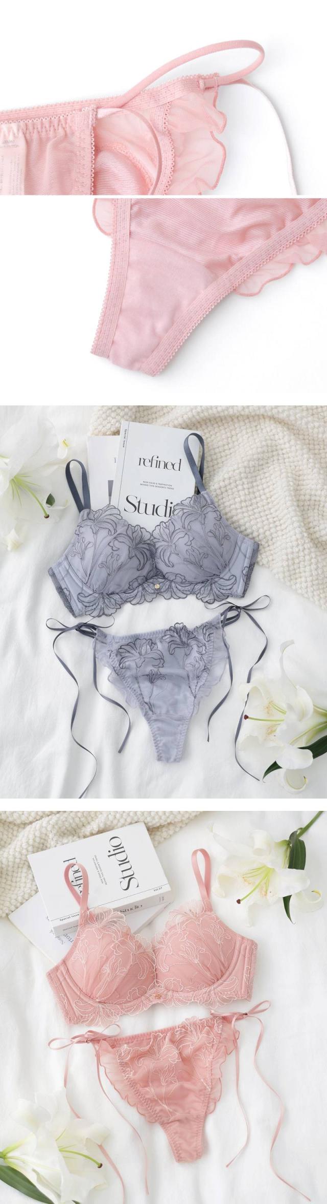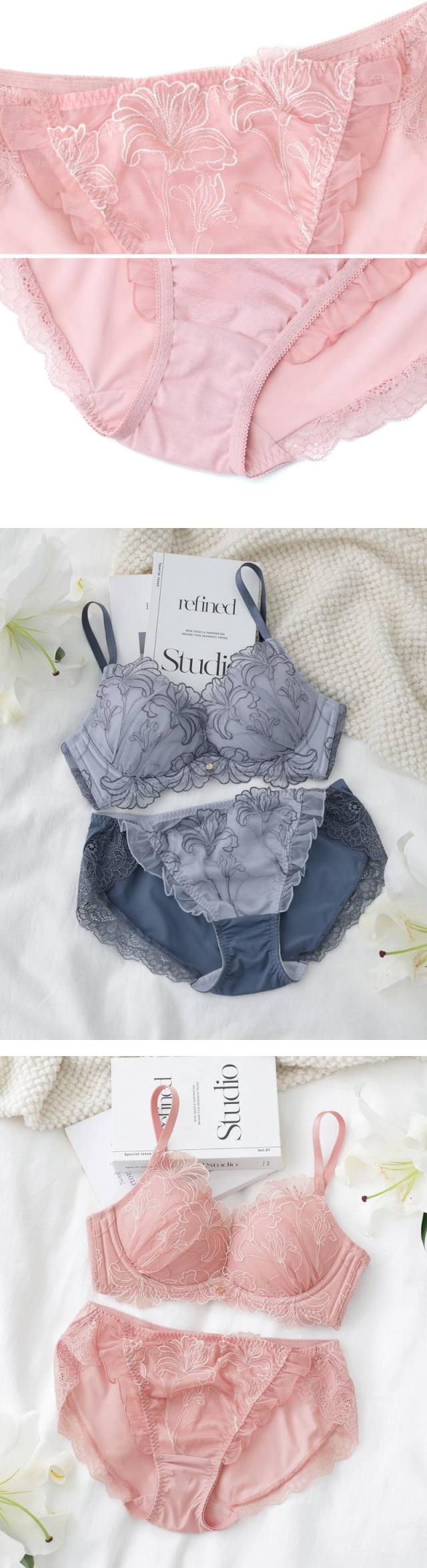 ブラジャー ショーツセット 大きいサイズ 盛りブラ レース 刺繍 かわいい ノンワイヤーブラ