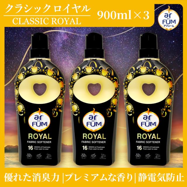 3個セット アフューム 柔軟剤 クラシック ロイヤル 本体(900ml) イチジクとシダーウッドのエレガンスな香り ブラックレーベル ボトル [花粉吸着防止]【メーカー直営 王子製薬】