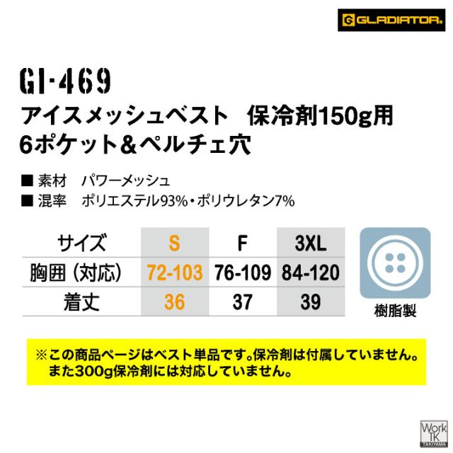 CO-COS GI-469 アイスメッシュベスト 保冷剤150g用 ペルチェ対応 ウェア単品 暑い室内作業や空調ウェアが使えないシーンに最適!! ※保冷剤は付属していません。