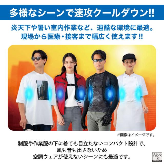 作業服・空調ウェアの下に着ても目立たず、多様なシーンで速攻クールダウン。