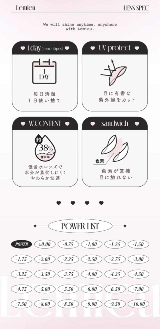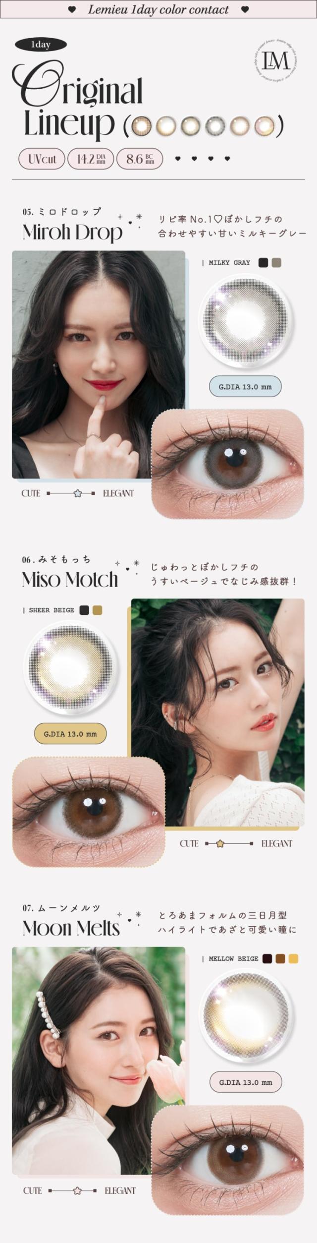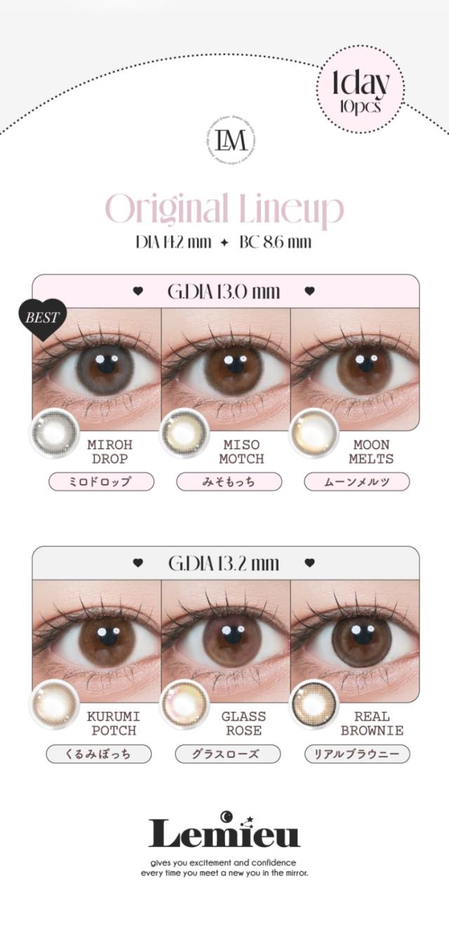 ルミュー Lemieu 1day カラコン ワンデー ナチュラル 水光 透明感 裸眼風 盛れる 度あり 度なし UV DIA14.2mm カラーコンタクト