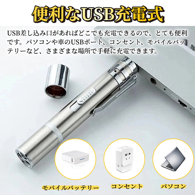 USB充電式なので、電池交換の手間が一切不要です。パソコンやモバイルバッテリーから簡単に充電できるため、いつでも手軽に使えます。エコで経済的な設計も嬉しいポイントです。/PC322/6-322-2603241527.jpg)