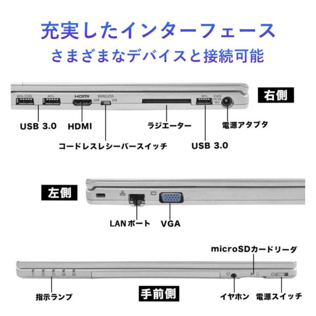 Panasonic 中古ノートパソコン Windows11 Office付き 12.1インチ CF-SZ5 第6世代 Core i5 メモリ4GB/8GB SSD128GB/256GB 初心者向け