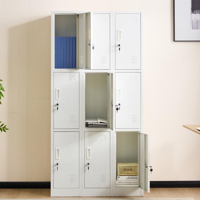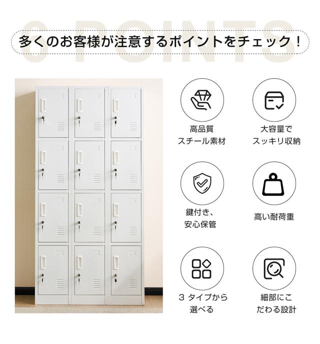 OSJ ロッカー おしゃれ スチールロッカー 9人用 ホワイト 鍵付き スペアキー付 スチール製 収納 オフィス 事務所 会社 業務用 スリム かぎ付き 更衣ロッカー オフィスロッカー キャビネット オフィス用品 白