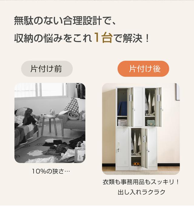 シンプルなデザインで、いつも整頓された空間を実現。個人別の収納スペースで私物をきれいに保管できます。