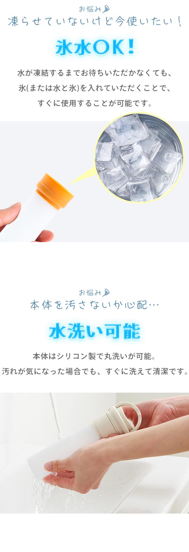 (検索用:暑さ対策 氷のう 取っ手付き 持ち手付き 真空断熱構造 二重構造 携帯氷のう 水筒型 アイデア 4570151174524 4570151174180 4570151174173)