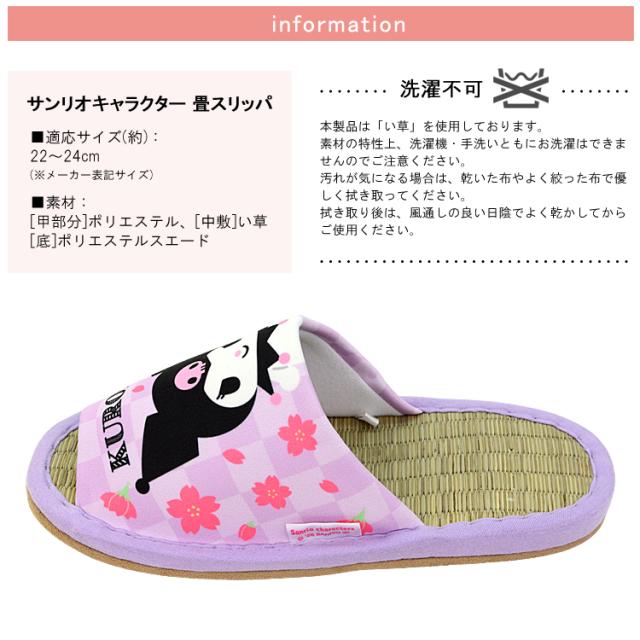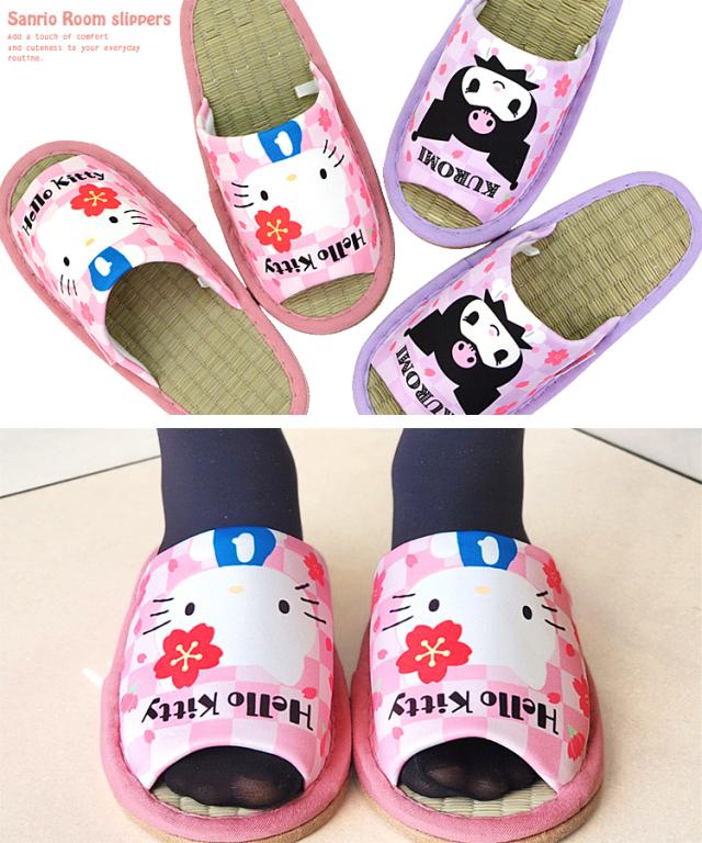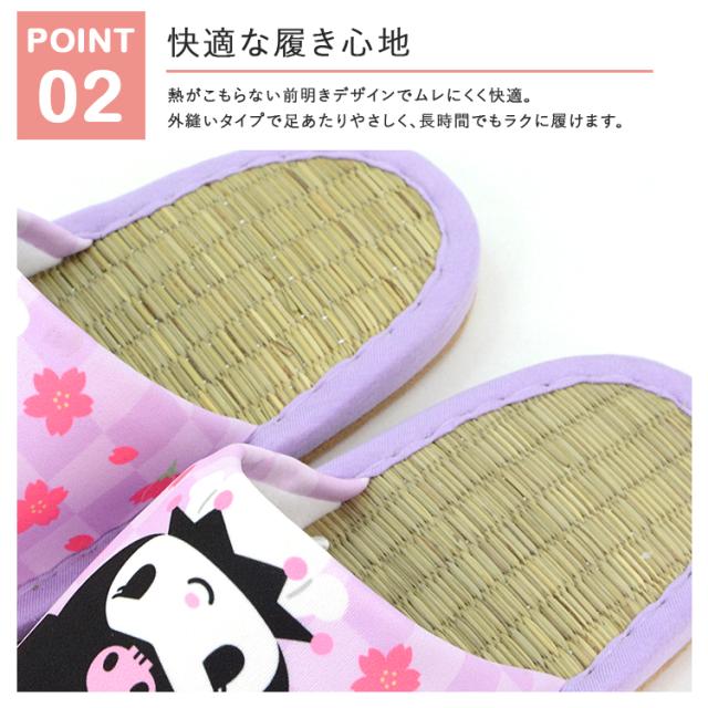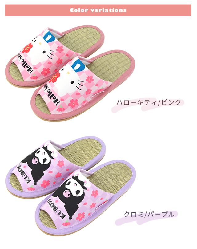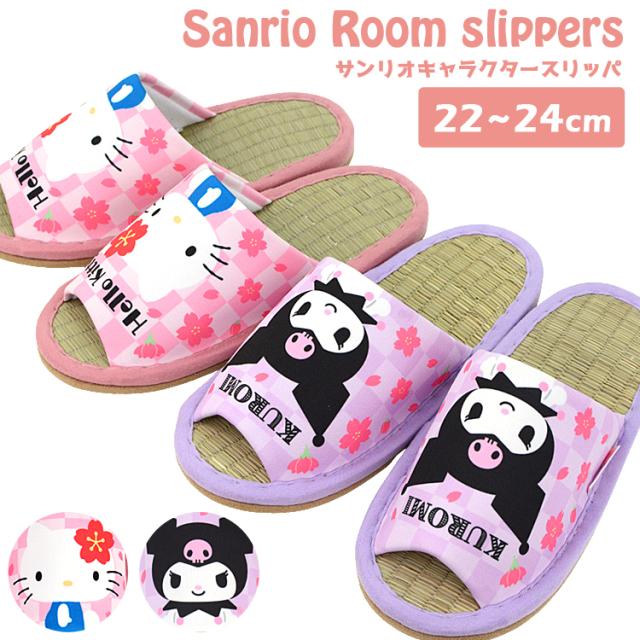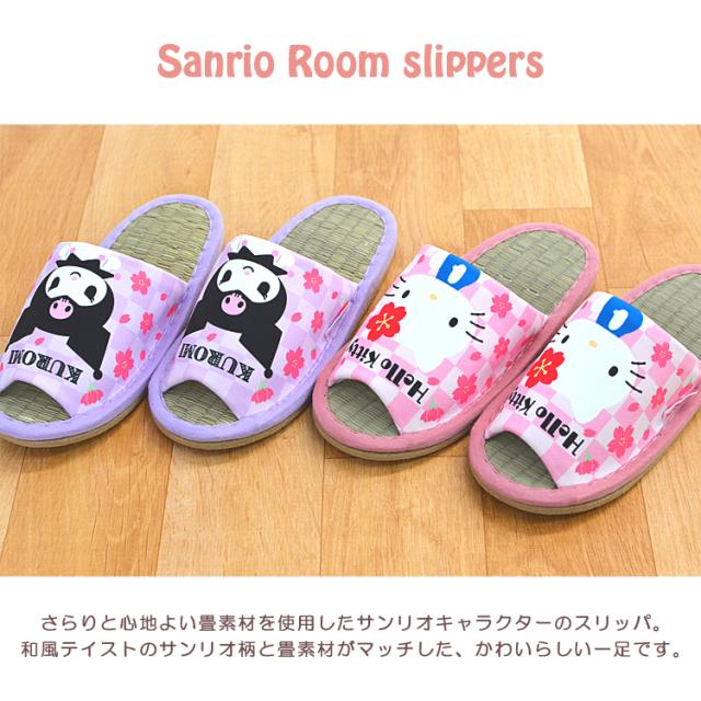 ハローキティ クロミ サンリオ スリッパ 22-24cm 畳 前空き 外縫い たたみ 春夏秋 オールシーズン 夏用 前開き 大人 レディース 子供 キッズ 室内履き かわいい キャラクタースリッパ キティ クロミちゃん お誕生日 プレゼント 有料ギフトラッピング対象品