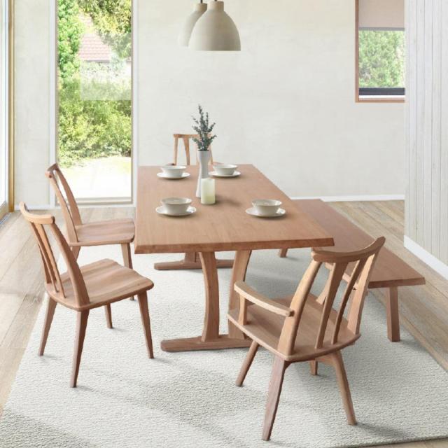 ナチュラルな木の風合いとやわらかなフォルムで統一された「結 yuiシリーズ」は、テーブル・チェア・ベンチを自由に組み合わせることで、お部屋にまとまりのある心地よい空間を演出します。ライフスタイルや人数に合わせて選べるため、無理なく理想のダイニングが完成します。