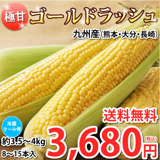 とうもろこし ゴールドラッシュ 送料無料 約3.5〜4kg 《クール便でお届け》 お取り寄せ 九州産 味来 極甘フルーツコーン スイートコーン 野菜
